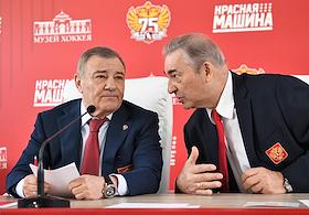 Отчетно-выборная конференция Федерации хоккея России (ФХР). Президент ФХР Владислав Третьяк (слева)…
