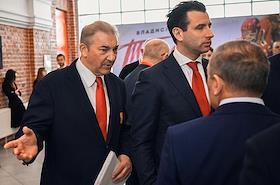 Отчетно-выборная конференция Федерации хоккея России (ФХР). Слева направо: президент Олимпийского…