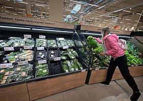 Работа торгово-развлекательного центра "Саларис". Покупатели в овощном отделе гипермаркета "Глобус"…