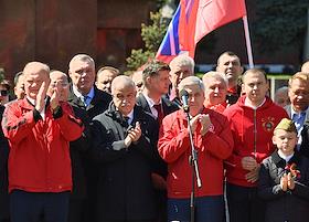Церемония торжественного приема в пионеры на Красной площади. Секретарь Московского городского…