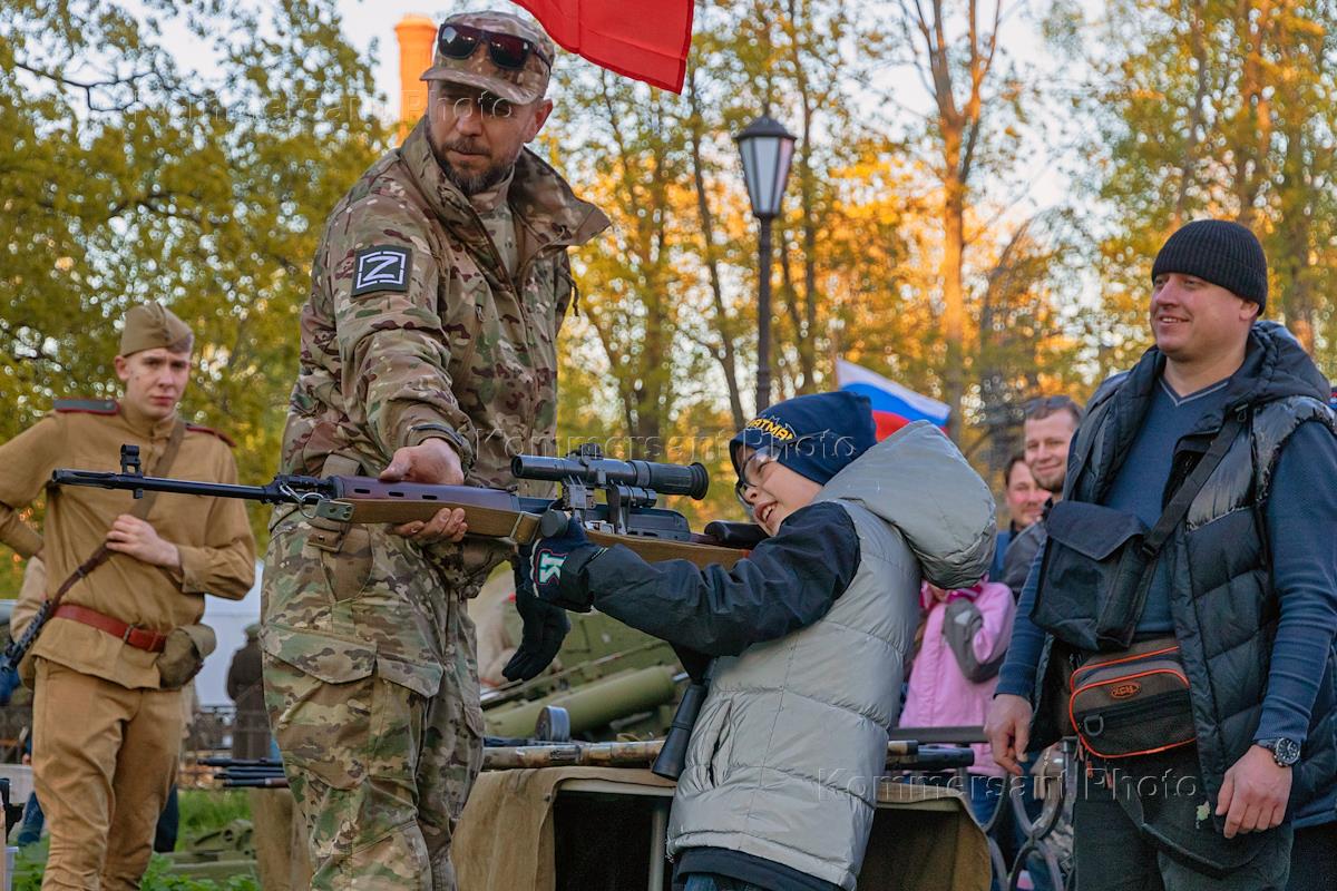Всероссийская акция "ночь музеев" в Артиллерийском музее. Посетители акции стреляют холостыми…