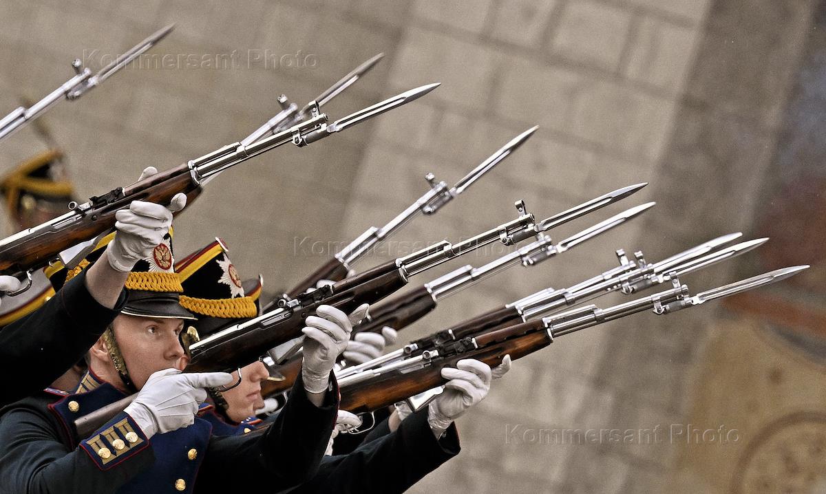 Церемония развода пеших и конных караулов Президентского полка на Соборной площади Московского…