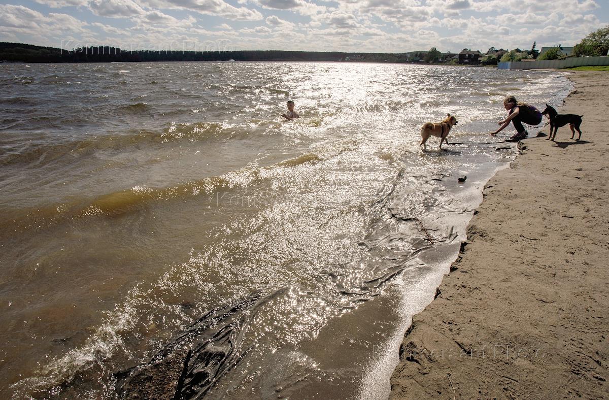 Виды города Сысерть. Жанровая фотография. Дети купаются в реке Сысерть.
