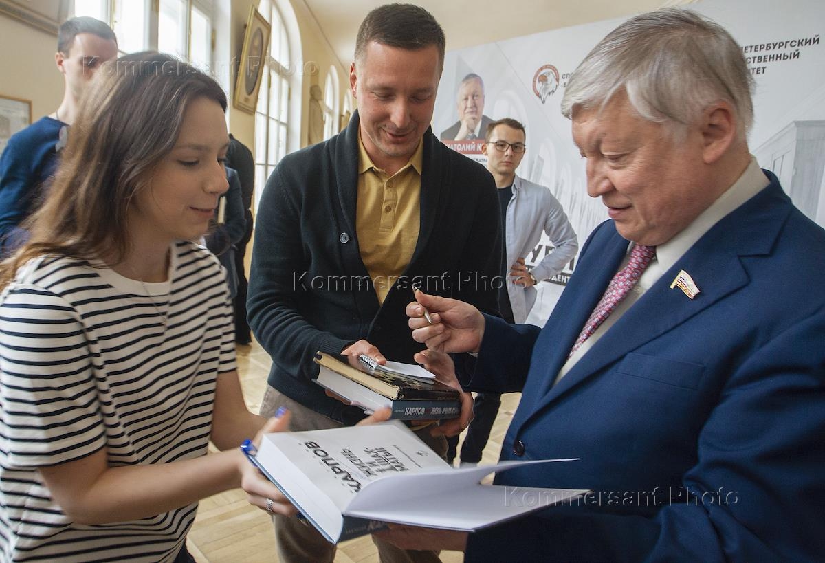 Спорт 12-й чемпион мира по шахматам Анатолий Карпов провёл в здании Двенадцати коллегий сеанс одновременной игры со студентами Санкт-Петербургского государственного университета.