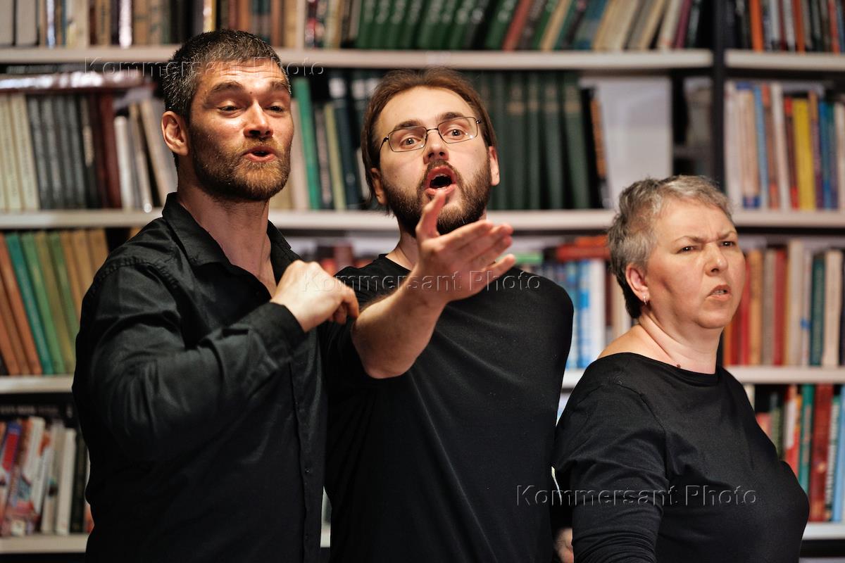Культура «Библионочь» в Библиотеке № 19 имени Ф.М. Достоевского. Актеры импровизационного плейбэк-театра «Соль» разыгрывают истории, которые рассказывают сами зрители.