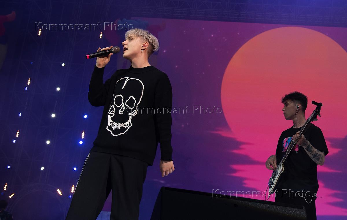 Фестиваль "Петровские ассамблеи 2.0" на стадионе "Газпром Арена". Певец Slava Marlow (Артем Готлиб)…