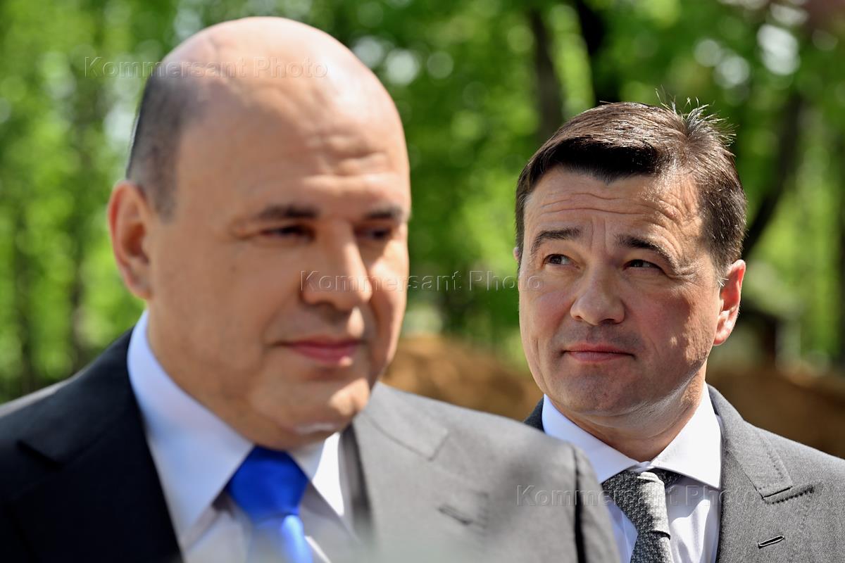 Председатель правительства России Михаил Мишустин (слева) и губернатор Московской области Андрей…