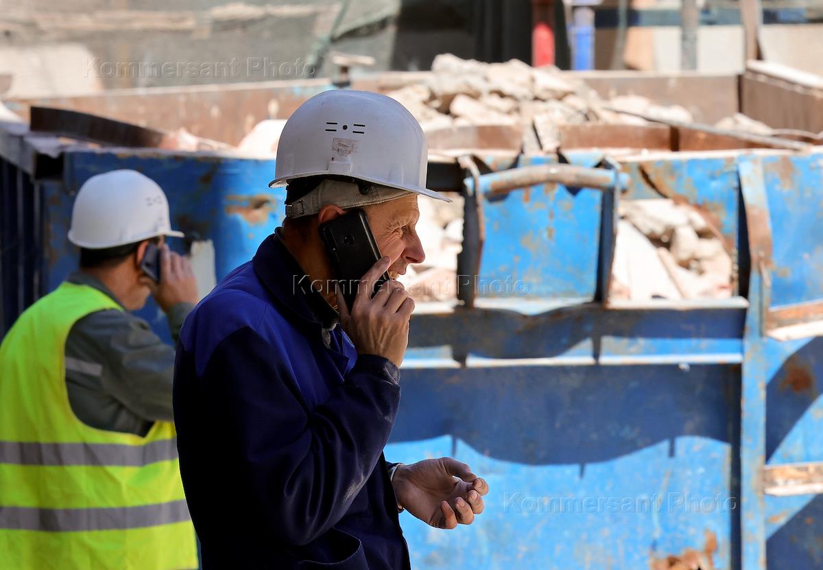 Последствия обрушения строительных лесов в Леонтьевском переулке.
