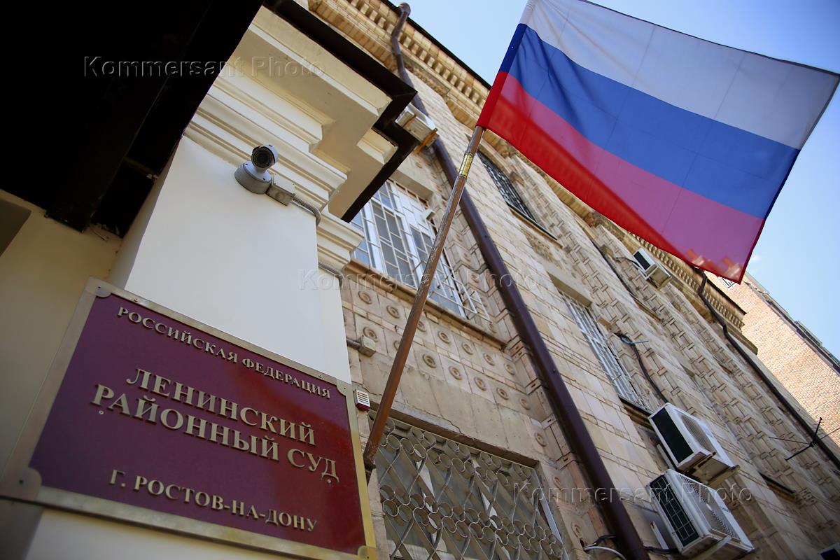 Виды Ростова-на-Дону. Жанровая фотография. Вывеска и флаг России на здании Ленинского районного суда.