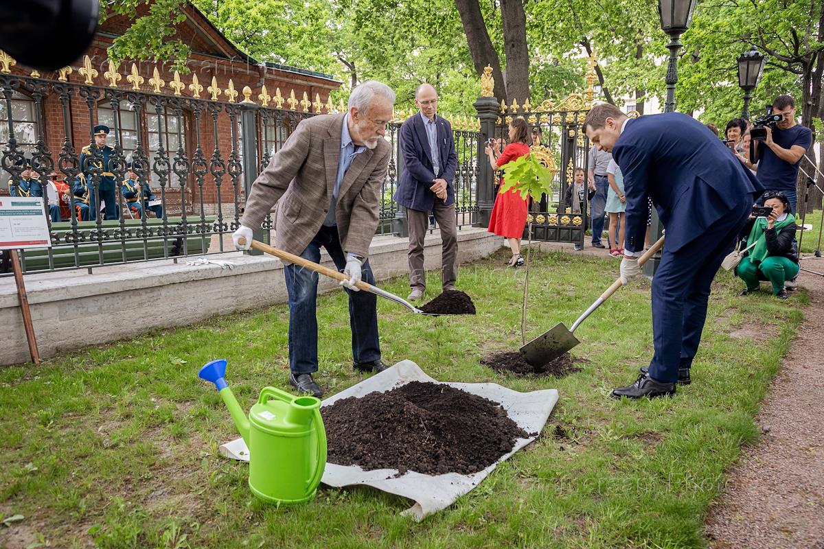 Церемония посадки двух саженцев, пророщенных из желудей дуба петровского времени, которому в этом…
