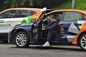 Работа каршеринговой компании "СитиДрайв". Жанровая фотография. Клиент компании за рулем автомобиля.