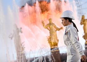Московская неделя моды на ВДНХ у фонтана "Дружбы народов". Коллективный показ дизайнеров у фонтана…