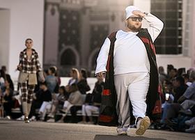 Московская неделя моды на ВДНХ. Коллективный показ дизайнеров на площади у фонтана "Дружба народов".