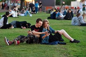 Праздник выпускников средних школ Санкт-Петербурга "Алые паруса". Выпускники снимают на мобильные…