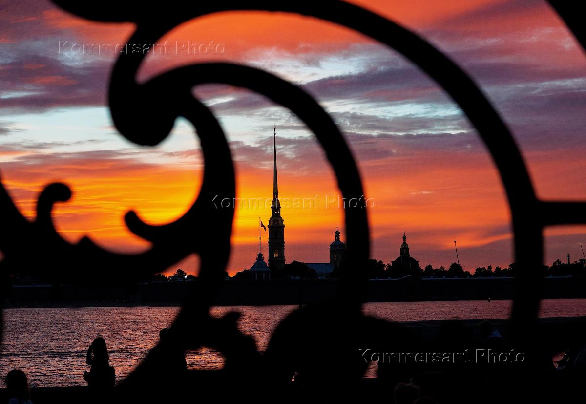 Виды Санкт-Петербурга. Жанровая фотография. Силуэт Петропавловский крепости через завиток чугунной…