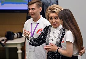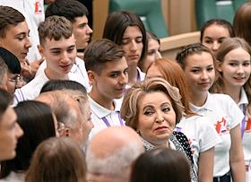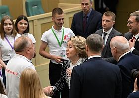 Политика Встреча председателя Совета Федерации (СФ) России Валентины Матвиенко с участниками российско-белорусского военно-патриотического проекта "Поезд Памяти" в СФ России.