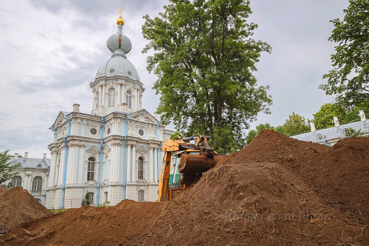 Виды Санкт-Петербурга. Жанровая фотография. Работы по благоустройству территории возле Смольного…