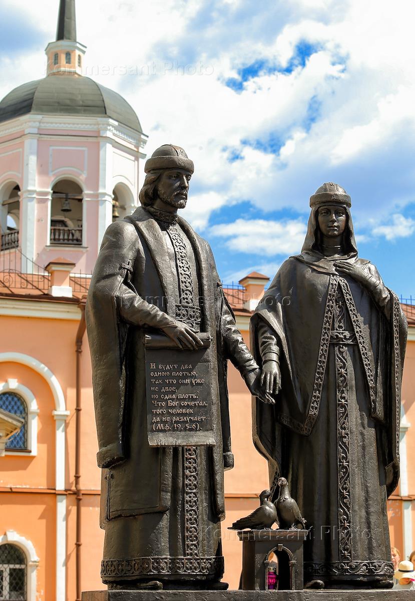 Виды Томска. Памятник святым Петру и Февронии в сквере Богоявленского собора, скульптор Константин…