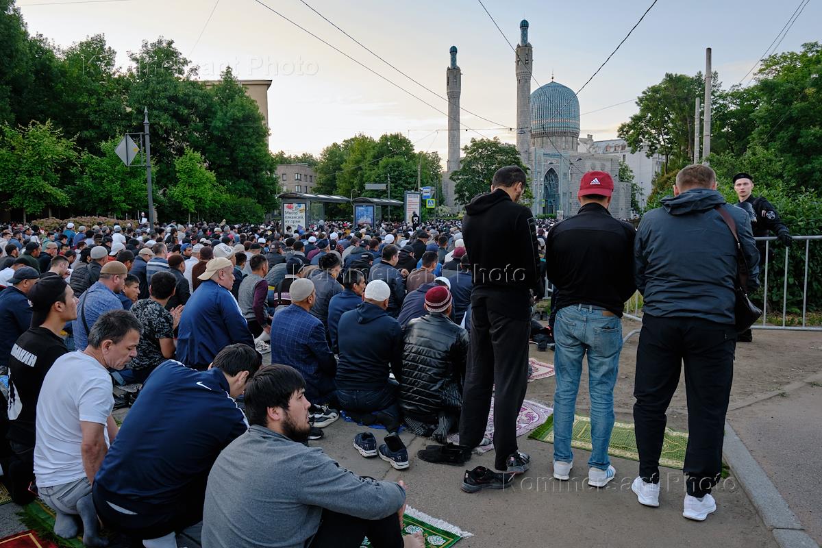 Празднование исламского религиозного праздника Курбан-Байрам в Санкт-Петербурге.