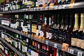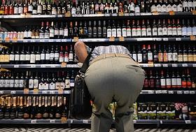 Магазин торговой сети "Пятерочка". Жанровая фотография. Покупатель в винном отделе.