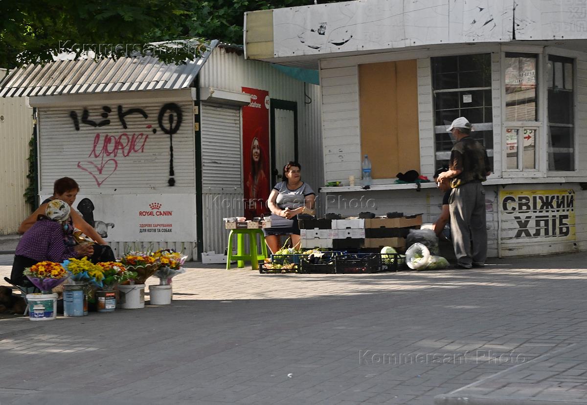 Ситуация в Херсонской области. Жанровая фотография. Женщины продают цветы и овощи на улице возле…