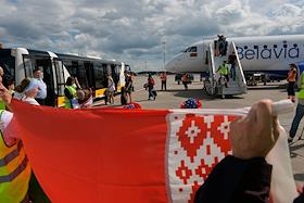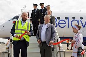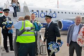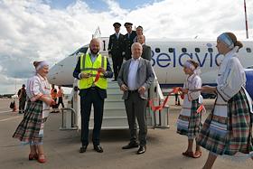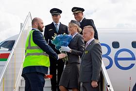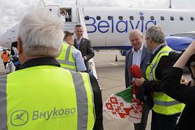 Торжественная встреча прямого регулярного рейса Москва (Внуково)-Минск авиакомпании "Белавиа" в Международном аэропорту Внуково.