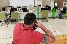 Работа отделения "Сбербанка" в Оружейном переулке. Клиенты в отделении.