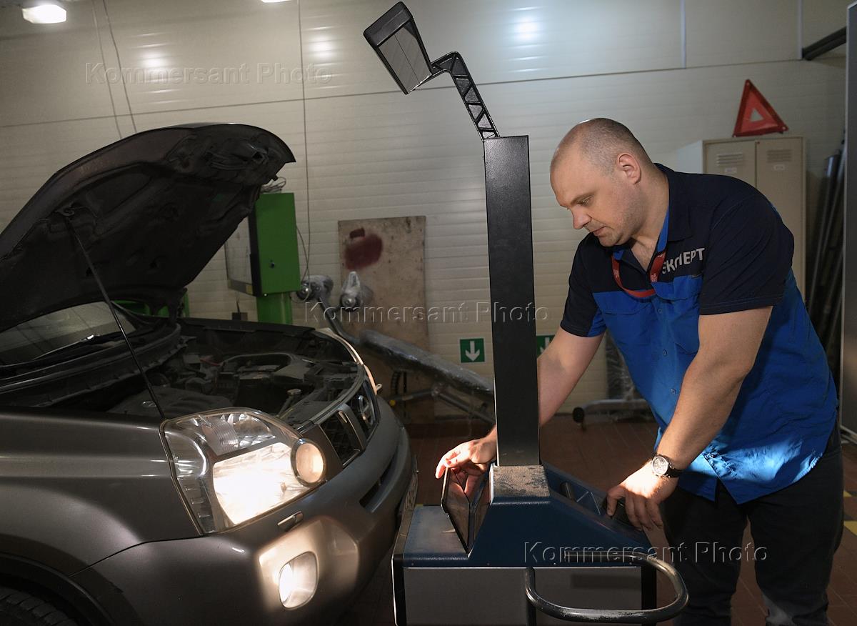 The work of the point of technical inspection of cars.