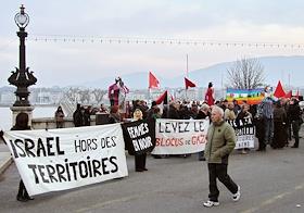 Антивоенная демонстрация в поддержку Палестины против Израиля на набережной Женевского озера.