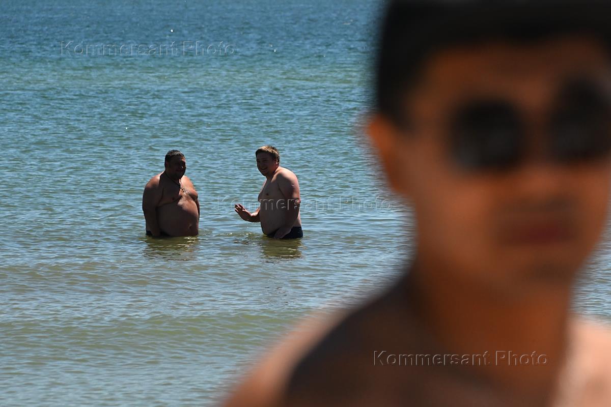 Ситуация в Бердянске. Жанровая фотография. Отдыхающие на пляже.
