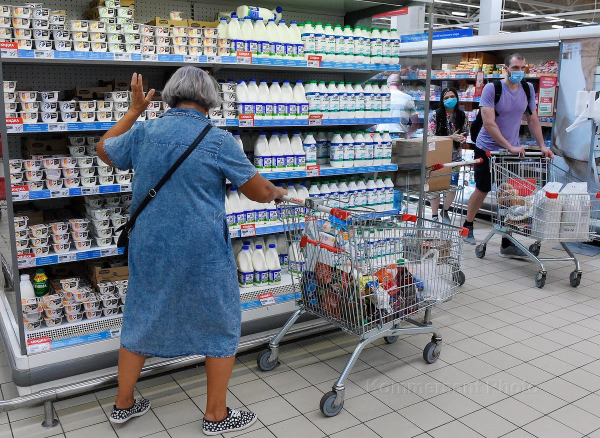 Работа магазина гипермаркета "Ашан". Жанровая фотография. Продавцы и покупатели в торговом зале…