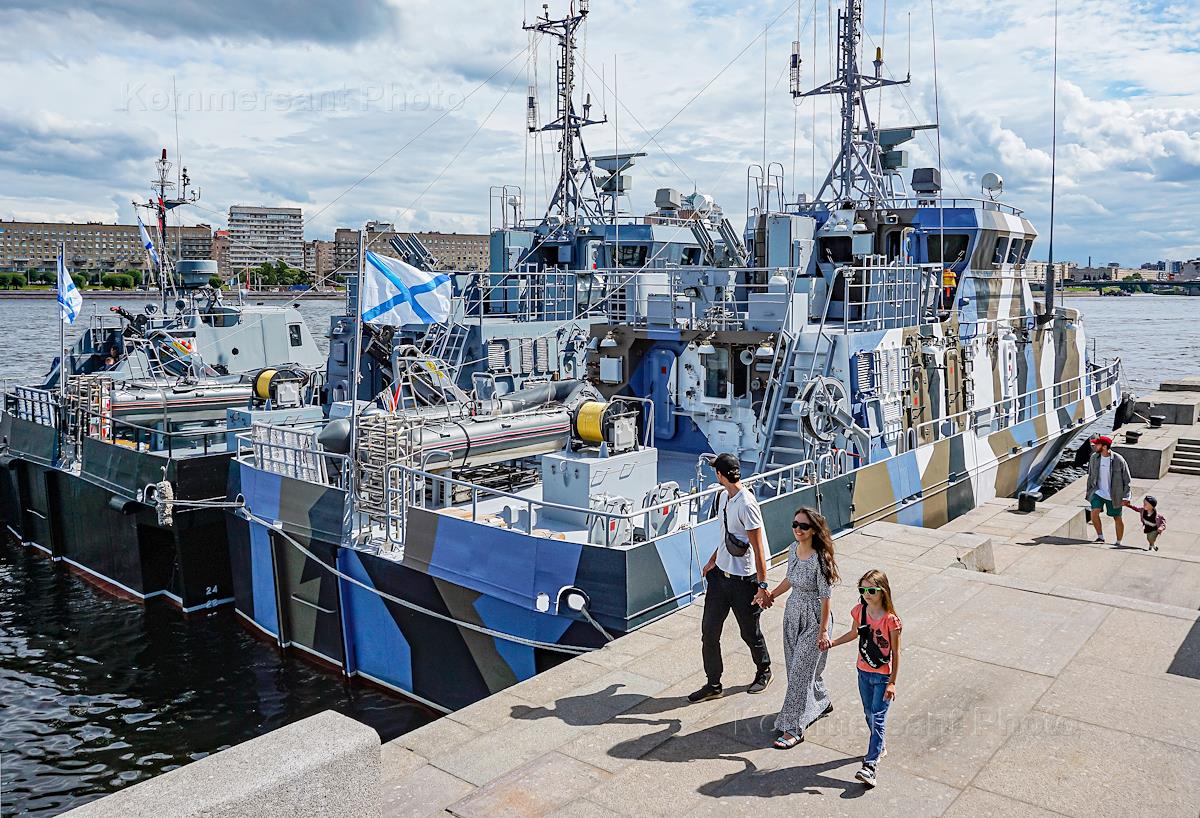 Генеральная репетиция парада, посвященного Дню Военно-морского флота (ВМФ) России. Военные корабли,…