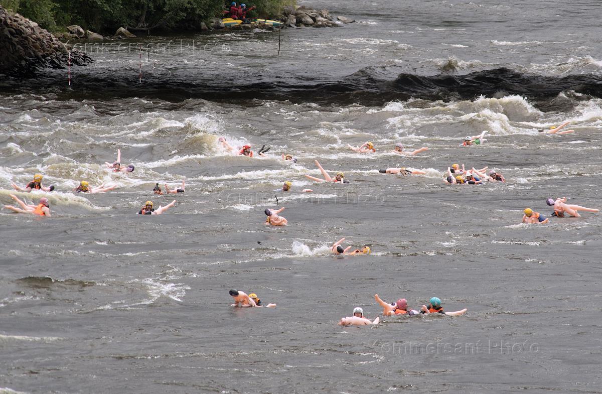 Заплыв "Bubble Baba Challenge – 2022" по Лосевскому порогу на надувных резиновых женщинах. Участники…