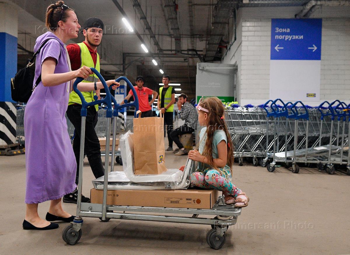 Пункт выдачи заказов в магазине ИКЕА "Белая Дача". Жанровая фотография. Погрузка товаров в…