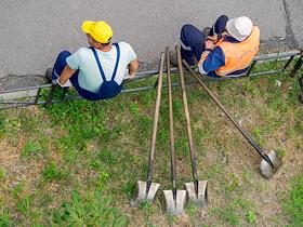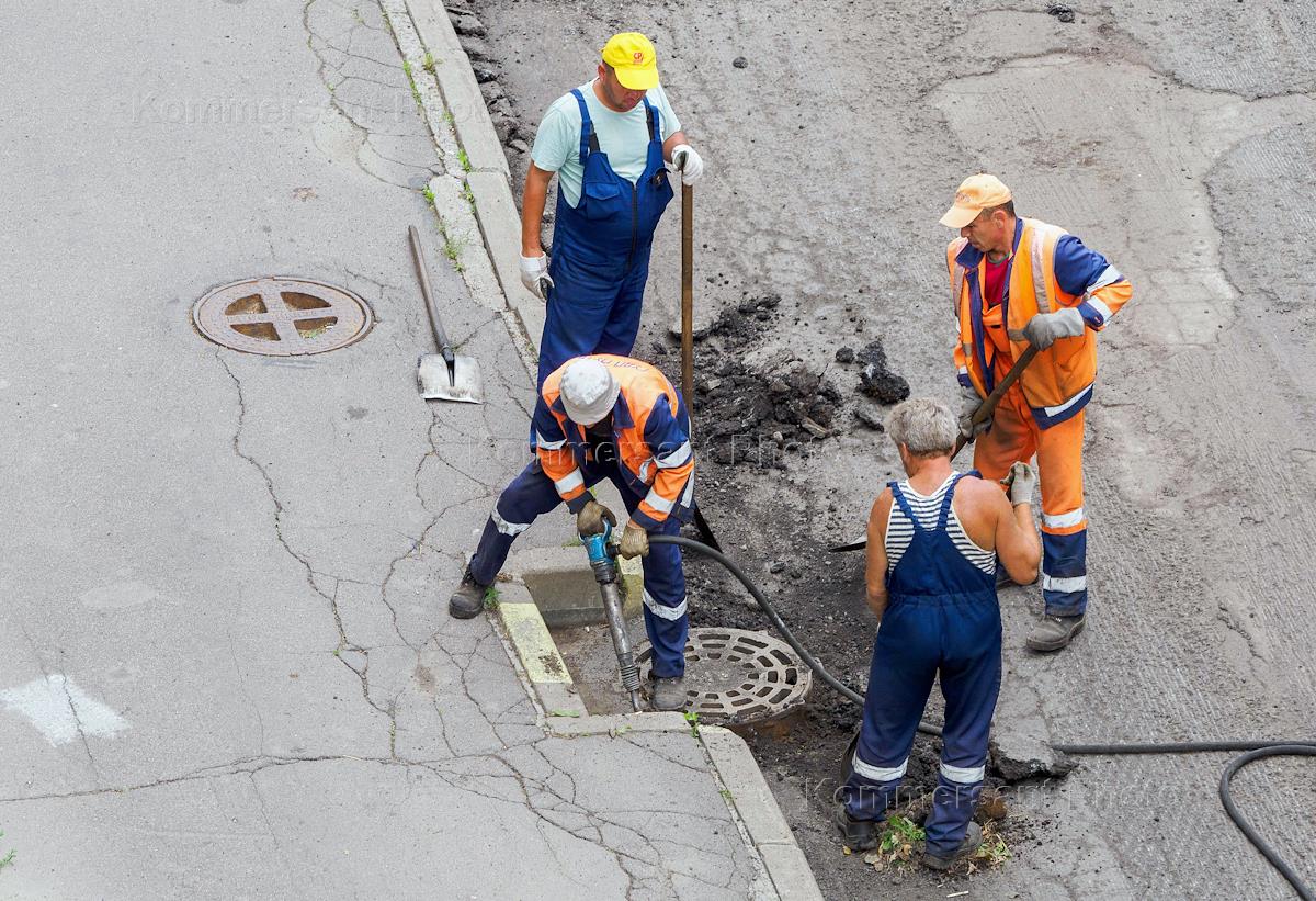 Жанровая фотография. Рабочие ГУДП "Путь" во время работ по ремонту асфальтового покрытия на…