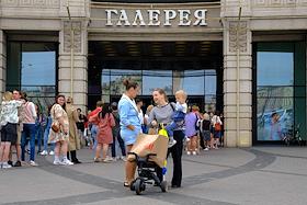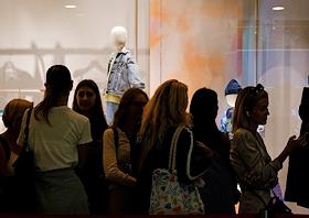 Жанровая фотография. Покупатели во вновь открывшемся магазине "H&M" в торговом центре "Галерея".