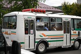 Виды Республики Алтай. Жанровая фотография. Остановка общественного транспорта на шоссе.