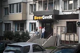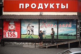 Виды Горно-Алтайска. Жанровая фотография. Молодые люди у входа в магазин разливного пива.