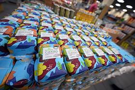 Жанровая фотография. Витрина с сахаром в супермаркете "Мария-ра".