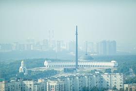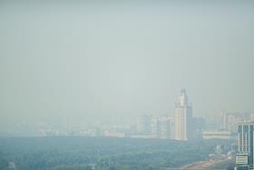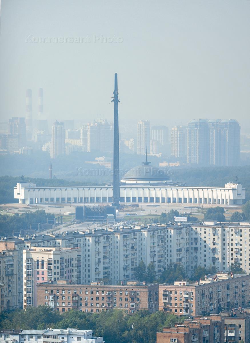 Виды Москвы. Дым и смог от природных лесных пожаров в Рязанской области в районе мемориального парка…