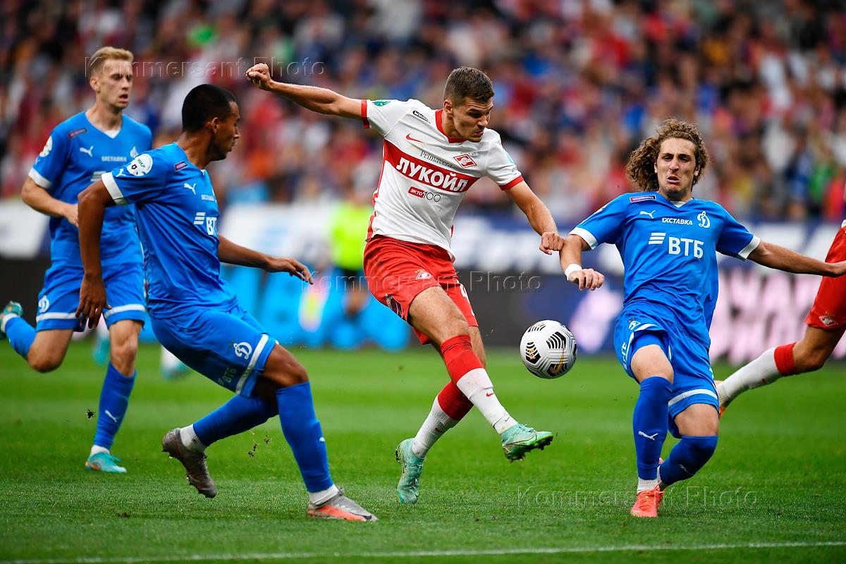 Спорт Российская Премьер-Лига (РПЛ). МИР - Чемпионат России по футболу 2022/2023. 6 тур. Матч между командами "Динамо" (Москва) - "Спартак" (Москва) на стадионе "ВТБ Арена".
