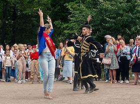 Празднование Дня государственного флага России. Жанровая фотография. Участники танцевального…
