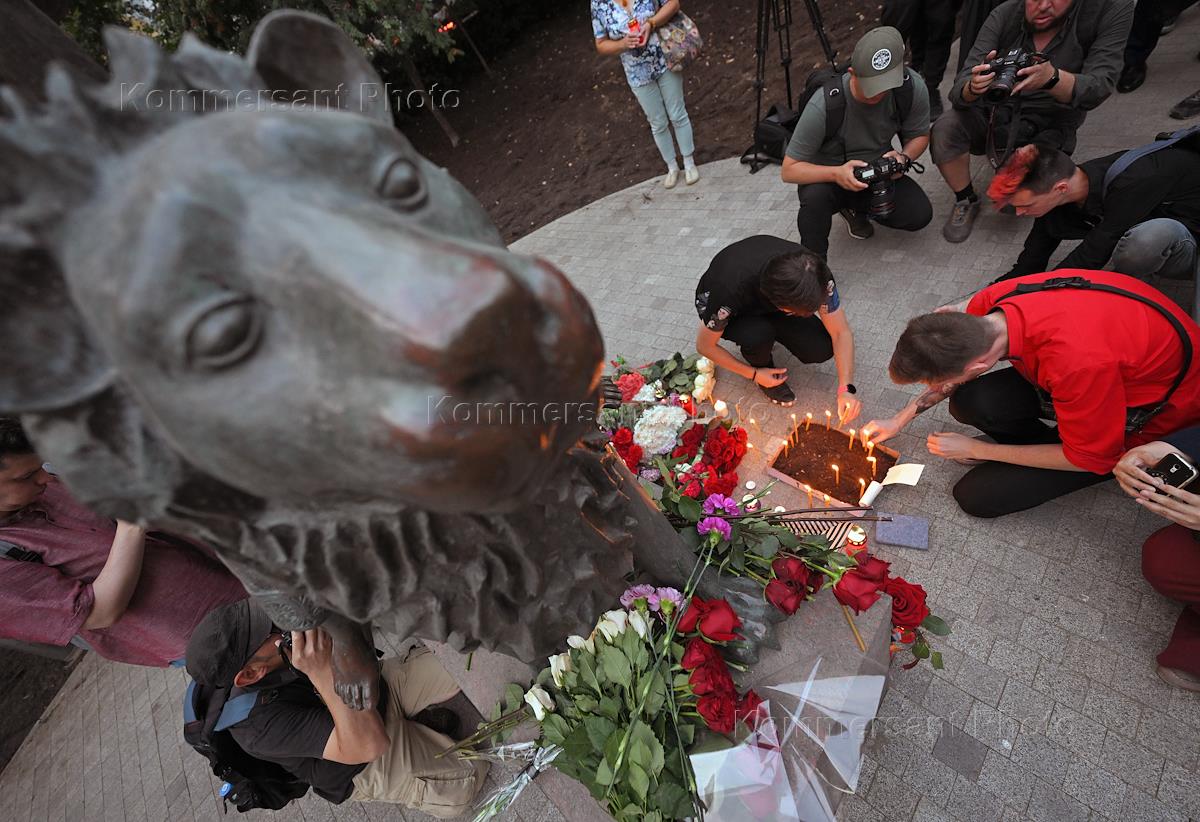 Акция "Свеча памяти" в память о погибшей журналистке Дарье Дугиной у скульптуры "Весть" в Брюсовом…