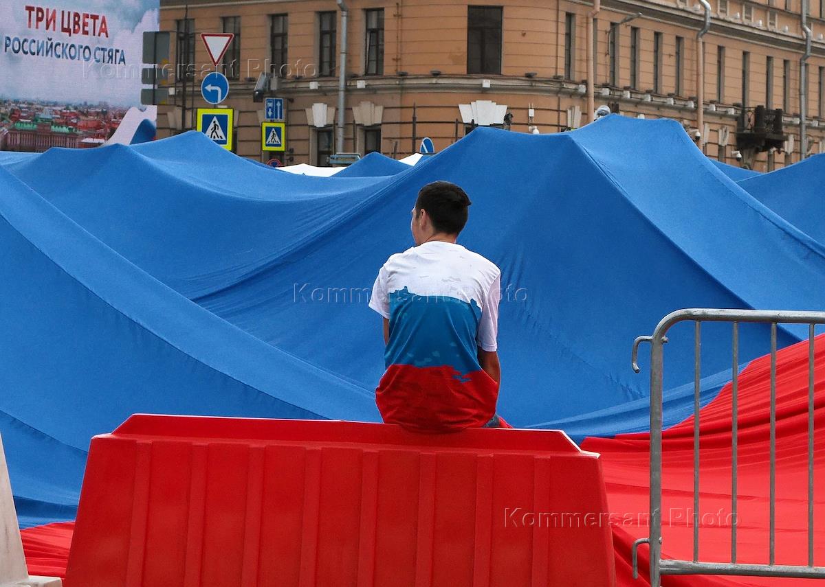 Подготовка к празднованию Дня государственного флага России в Санкт-Петербурге.
