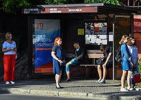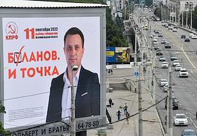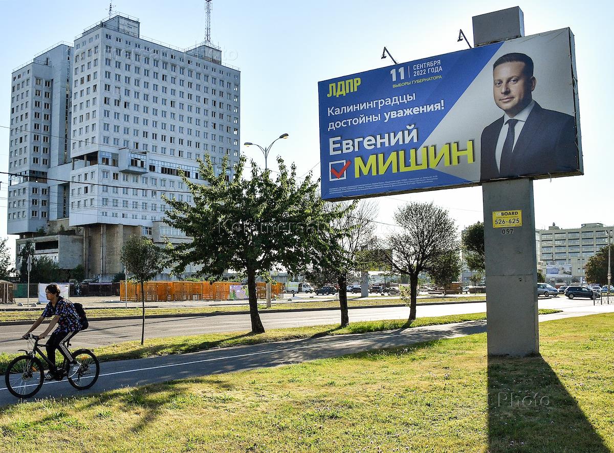 Репортаж о предвыборной кампании по выборам главы Калининградской области. Предвыборный плакат…