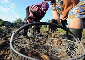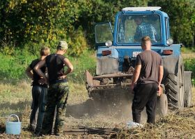 Уборка картофеля в деревне Переров Житковичского района Гомельской области.