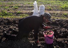 Уборка картофеля в деревне Переров Житковичского района Гомельской области. Жанровая фотография.