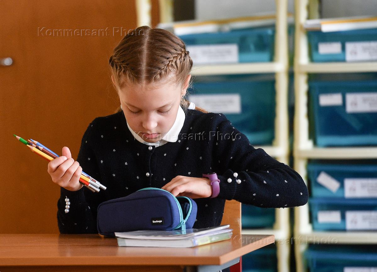 День знаний (1 сентября) в школе №1252 имени Сервантеса. Жанровая фотография. Учащиеся в классе…