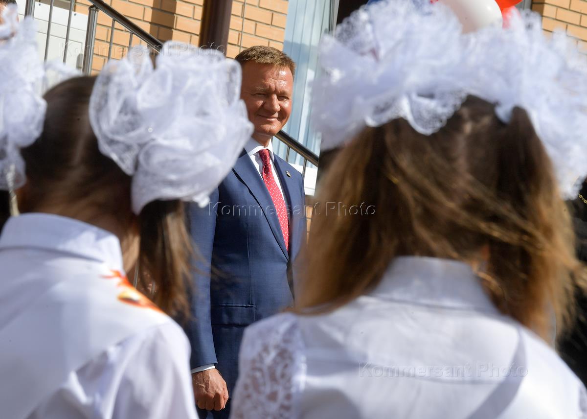 Политика Губернатор Курской области Роман Старовойт на торжественном открытии Черновецкой средней образовательной школы в День знаний (1 сентября) в селе Черновец, Пристенского района, Курской области.