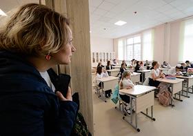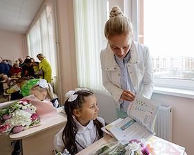 День знаний (1 сентября) в Опалиховской гимназии. Жанровая фотография. Учащиеся во время урока.
